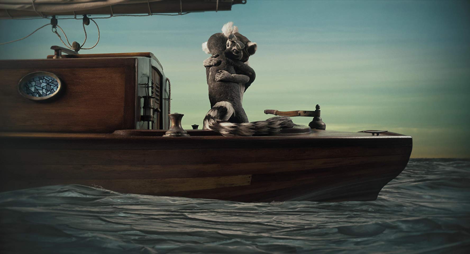 As the film opens, it harkens us back to a simple time. A cabin in the woods. A pot of coffee on the wood burning stove. Then there’s noise of someone entering. A Lemur! He gets a cup of coffee sits down and looks at his map. There, we see a picture of a balloon crossing the ocean. He marks the map and circles; his love!
